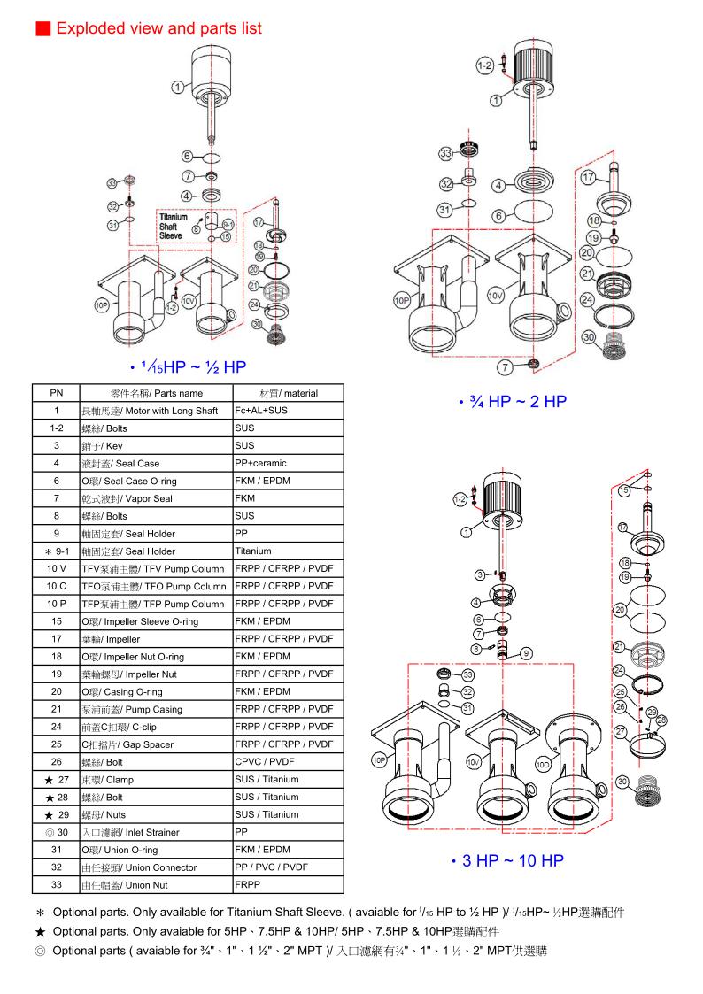 TFV/TFO/TFP/TFQ可空轉槽內直立式耐酸鹼泵浦