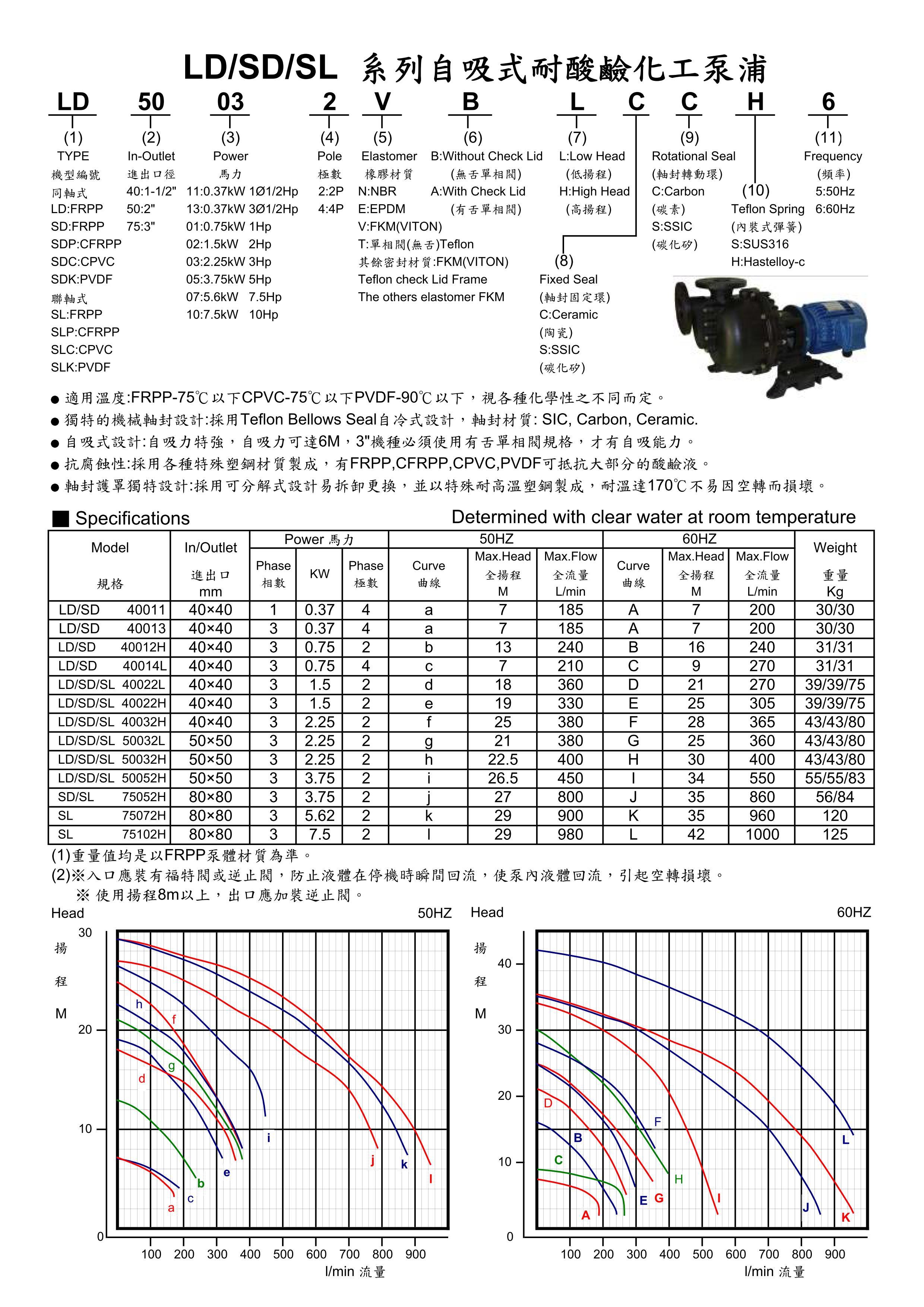 LD/SD/SL自吸式耐酸鹼化工泵浦