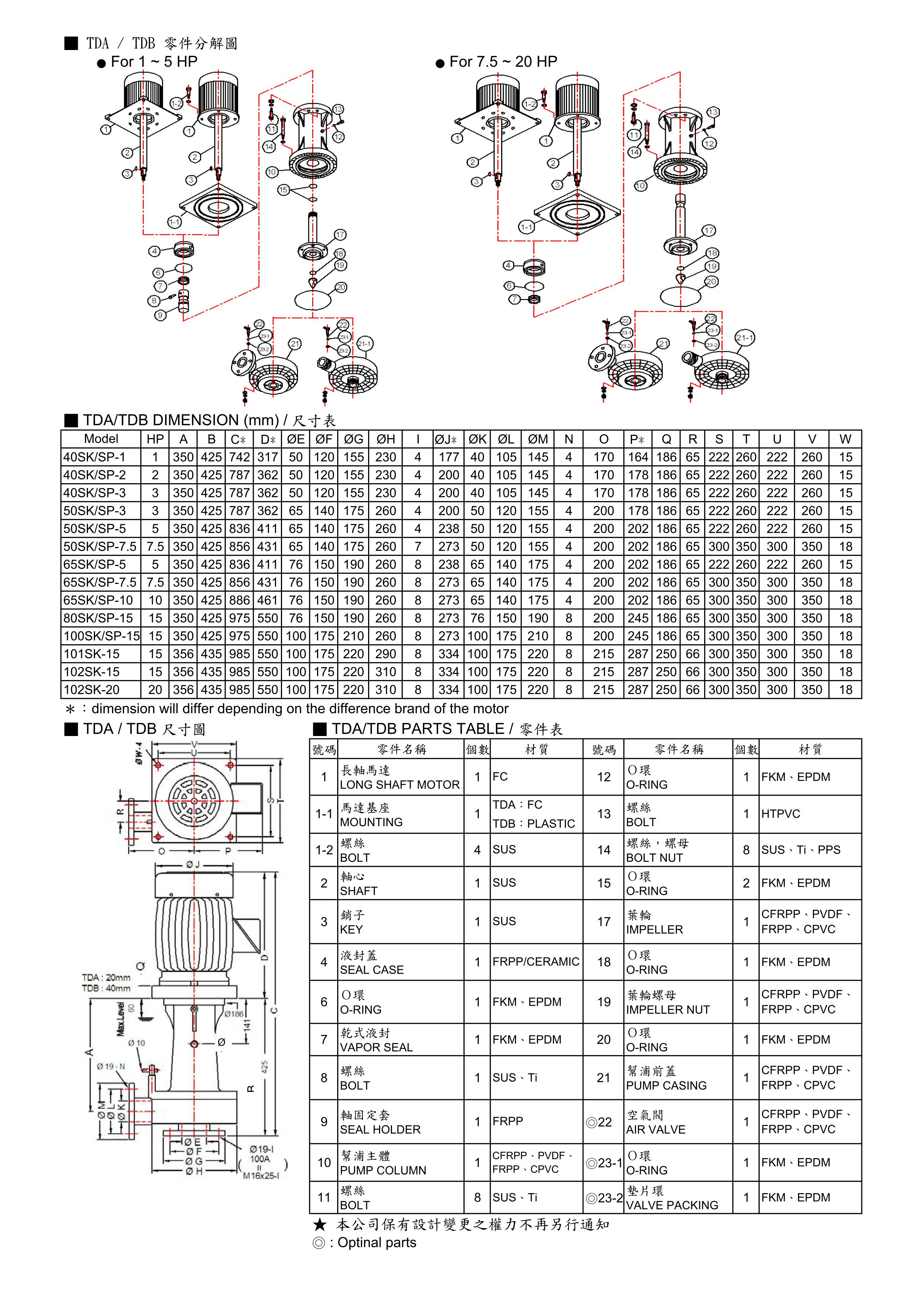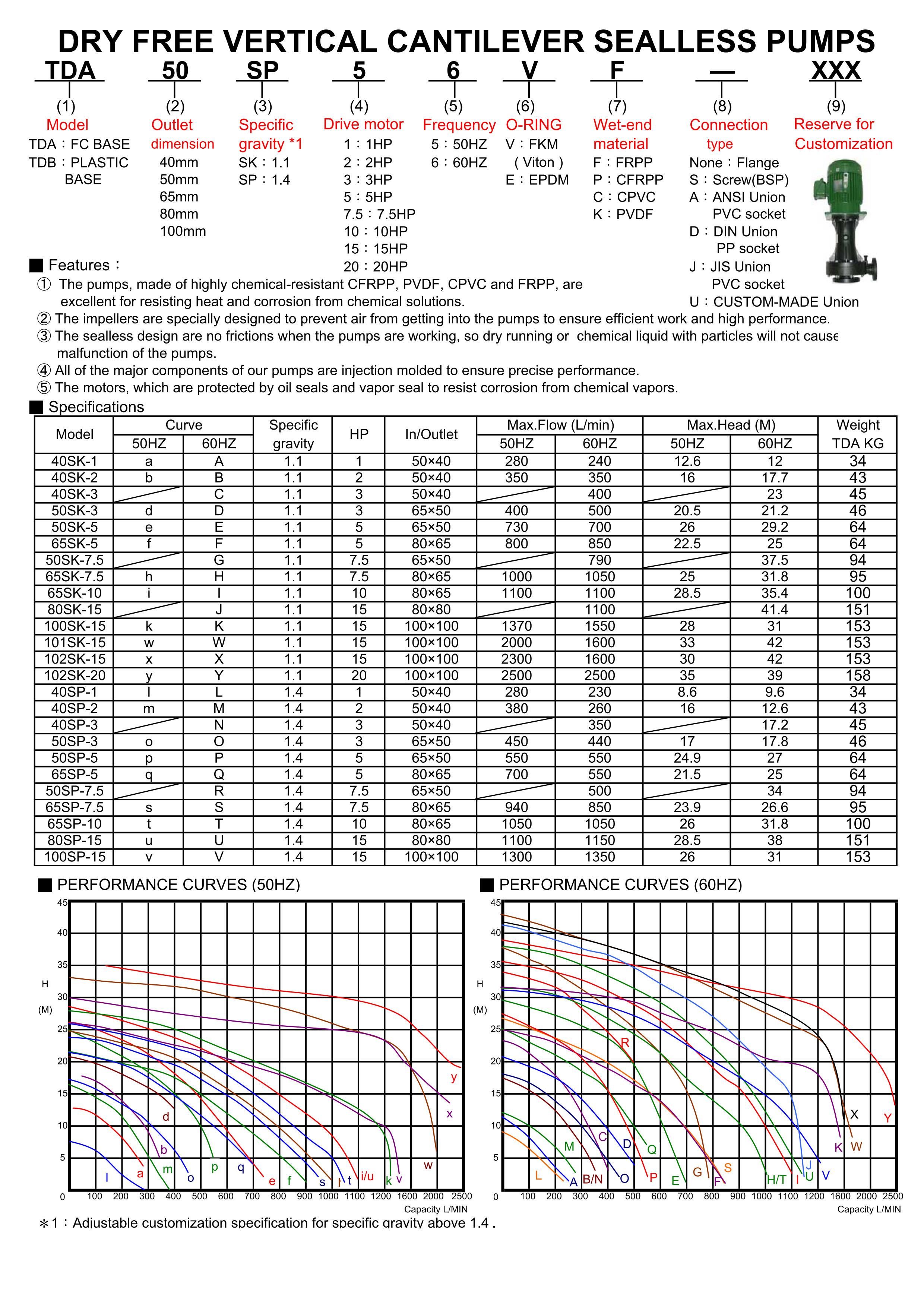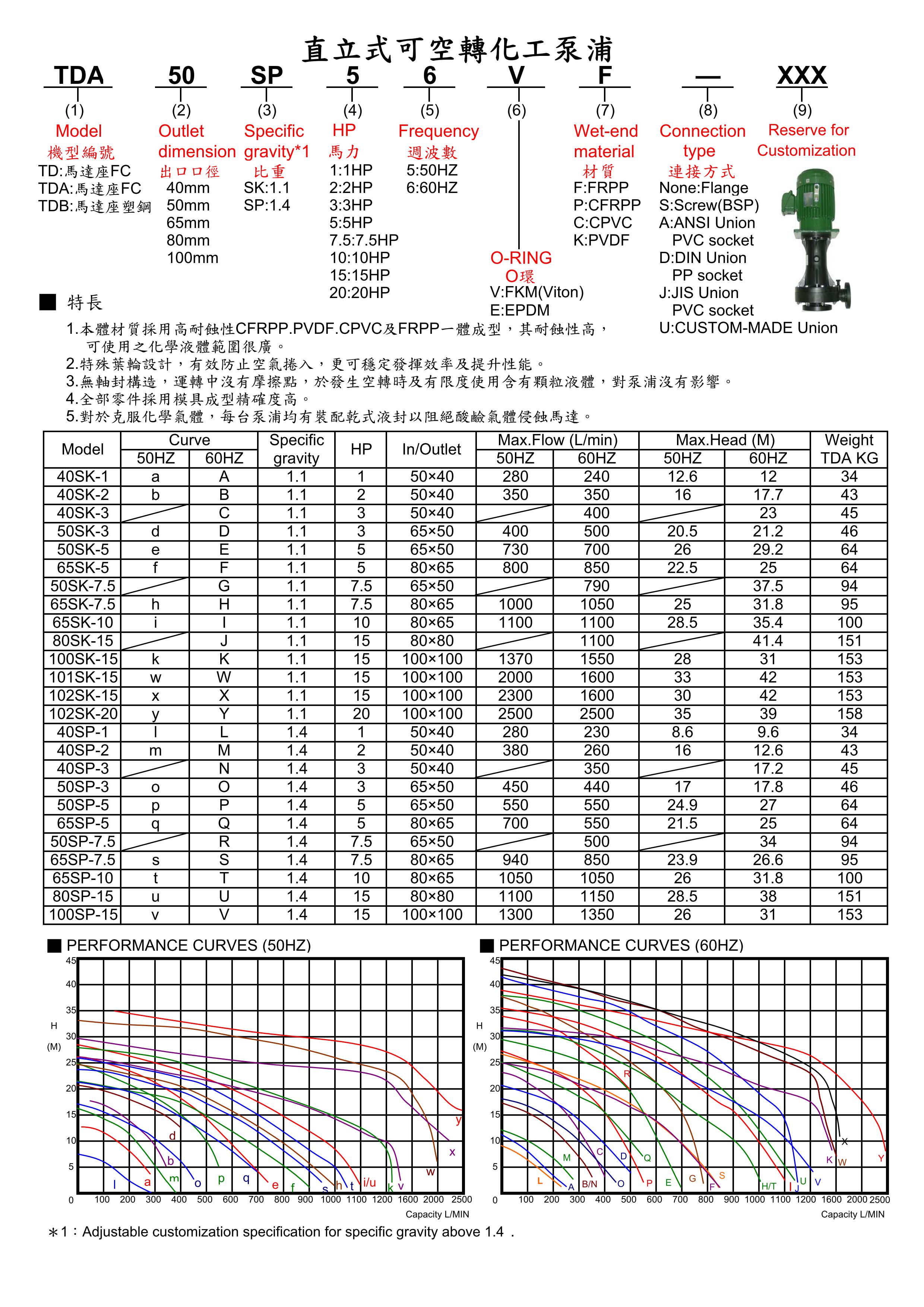 TDA/TDB 直立式可空轉耐酸鹼化工泵浦
